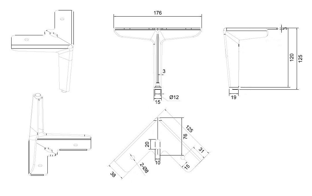 Опора для мебели MetalLine 320 H-125мм Сталь Черный песок (DH) F320S.125BSDH